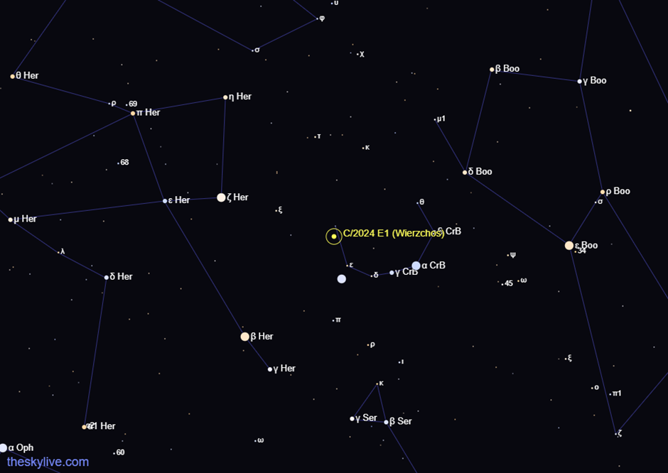 Readers can observe the live track of this comet by clicking on this link: C/2024 E1 (Wierzchos) Tracker – TheSkyLive.
